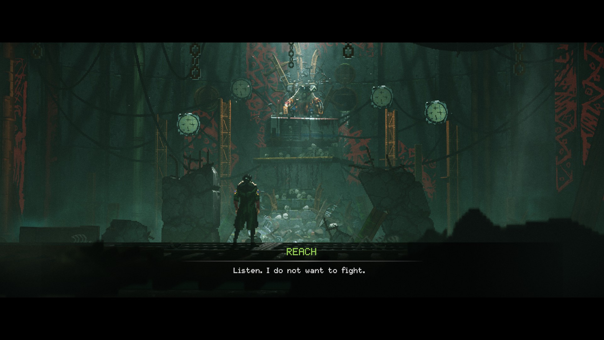 An eye-catching presentation is paramount in any work of art. It’s a way to get somebody’s attention and lure them into a new world for discovery. Replaced understands this, it’s an artistic marvel that blends the hand-crafted medium of pixel art with modern visual effects in illumination, particles, and shadows. There’s not a single environment and frame in the game that isn’t eye-catching.