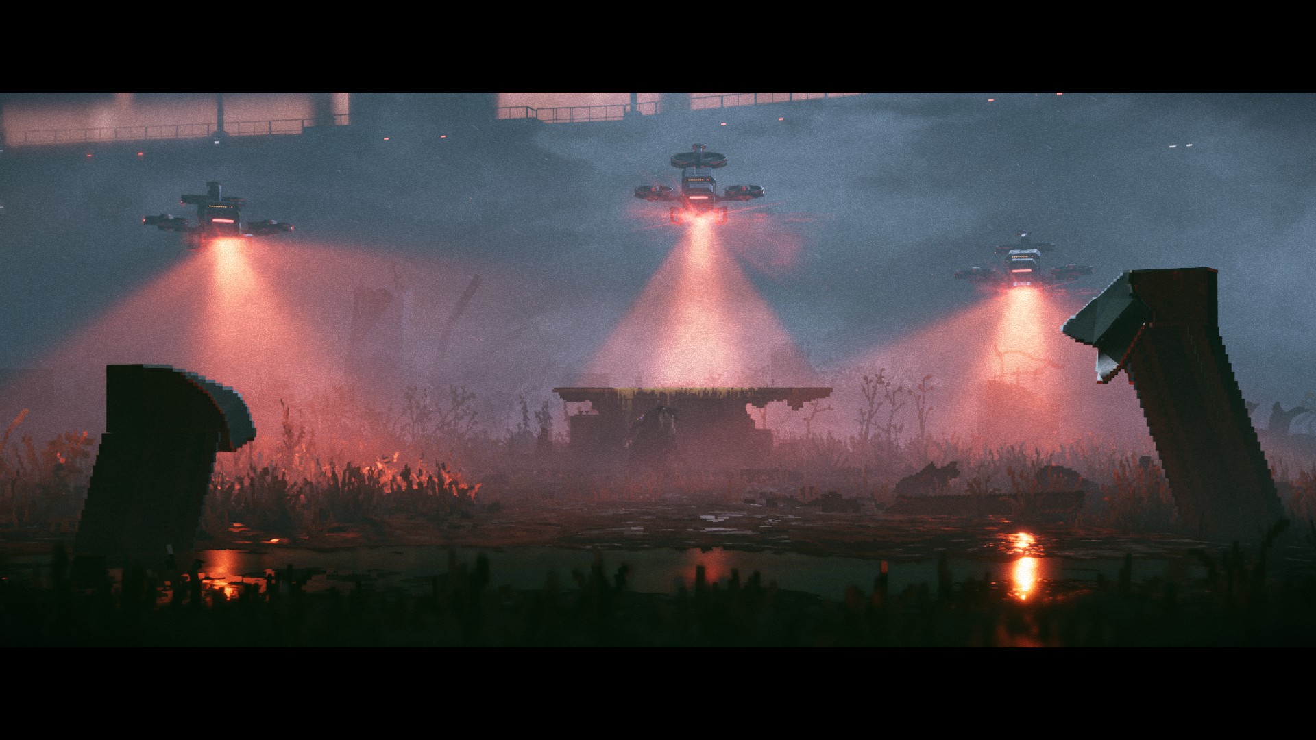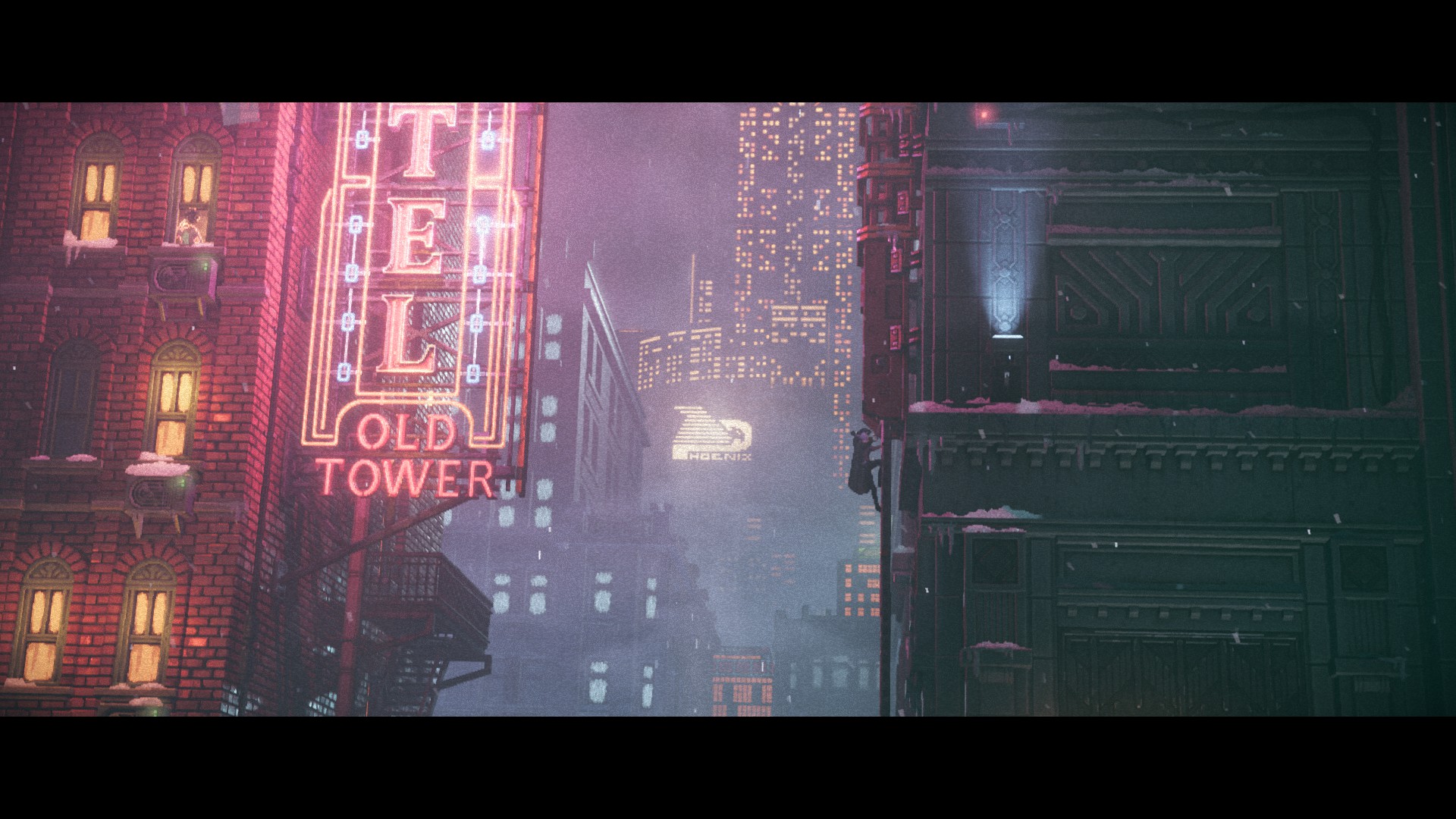 Some of these tropes are easy to gloss over thanks to Replaced’s top-notch visual presentation. It’s everywhere, starting with camera tricks, with the screen’s aspect ratio changing in real time, and some sequences featuring parallax effects or the entire screen spinning as Reach gets hit by a trooper’s baton and violently falls to the ground. And it’s also easy to be mesmerized by the composition of each level and the small details scattered around: small rats scurrying in the background of the sewers, how the light reflects on the water and trash is gently rocked by it, and the way the wind gently moves foliage back and forth are only a few examples. When it comes to seeing other characters and the myriad of animations they present, it all comes together to be quite striking.